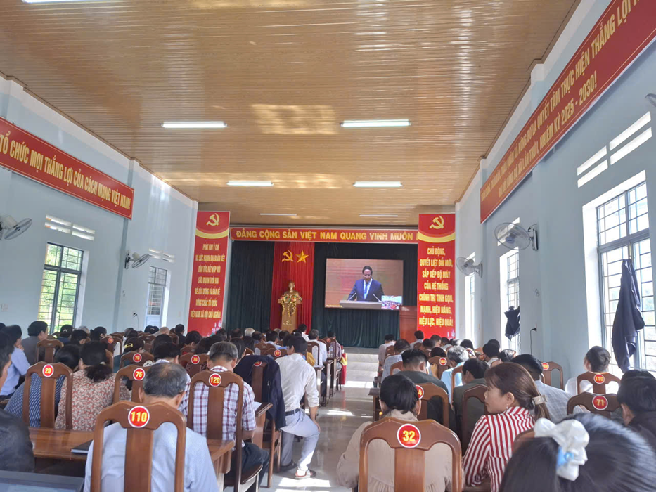 Tại hội nghị, cán bộ, đảng viên đã được quán triệt những nội dung trọng tâm của 4 nghị quyết quan trọng: Nghị quyết số 59-NQ/TW: Nghị quyết xác định hội nhập quốc tế là xu thế tất yếu, nhưng phải chủ động, sáng tạo, có chọn lọc, bảo đảm lợi ích quốc gia, gắn kết chặt chẽ với việc phát huy nội lực và nâng cao sức cạnh tranh; Nghị quyết số 70-NQ/TW: Nghị quyết đề ra mục tiêu bảo đảm an ninh năng lượng quốc gia đến năm 2030, tầm nhìn 2045, với định hướng phát triển năng lượng sạch, năng lượng tái tạo, gắn với chuyển đổi xanh và phát triển bền vững; Nghị quyết số 71-NQ/TW: Nghị quyết nhấn mạnh đột phá phát triển giáo dục và đào tạo, coi đây là quốc sách hàng đầu, hướng tới xây dựng hệ thống giáo dục hiện đại, công bằng, chất lượng, trong đó có chính sách nâng cao phụ cấp cho giáo viên, đẩy mạnh chuyển đổi số, ứng dụng trí tuệ nhân tạo; Nghị quyết số 72-NQ/TW: Nghị quyết đưa ra các giải pháp đột phá trong bảo vệ, chăm sóc và nâng cao sức khỏe Nhân dân, chú trọng củng cố y tế cơ sở, ưu đãi phụ cấp nghề nghiệp cho nhân viên y tế tuyến xã, đồng thời khuyến khích phát triển y tế tư nhân.