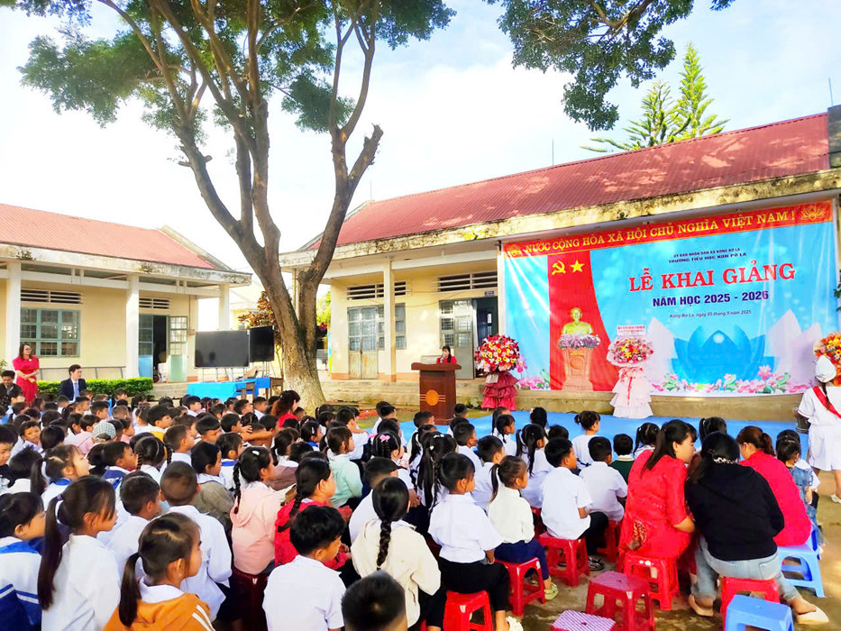 Hòa chung dòng chảy cả nước, thầy và trò các trường trên địa bàn xã Kông Bơ La cũng đã tổ chức lễ khai giảng trong không khí trang trọng, ấm áp và rộn ràng. Cờ hoa tung bay, trống trường ngân vang, tiếng hát Quốc ca hòa nhịp cùng triệu trái tim cả nước, để mỗi em học sinh Kông Bơ La thêm tự hào vì được là một phần của ngày hội lớn của dân tộc. Lễ khai giảng năm nay còn để lại nhiều ấn tượng đẹp với các tiết mục văn nghệ đặc sắc, tất cả tạo nên một không gian vừa hân hoan vừa thiêng liêng, mở đầu cho một năm học mới đầy hứng khởi.