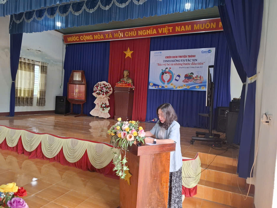 Tại sự kiện Bà Nguyễn Thị Kiều Anh – Chủ tịch Hội LHPN xã cam kết đồng hành cùng Ban Chỉ đạo công tác trẻ em xã trong việc tuyên truyền, vận động các hội viên và nhân dân đảm bảo trẻ em được chăm sóc dinh dưỡng hợp lý, uống đầy đủ vắc-xin Rota và các loại vắc-xin quan trọng khác. Hội liên hiệp phụ nữ xã sẽ phối hợp triển khai các hoạt động giáo dục, hướng dẫn kiến thức về dinh dưỡng và tiêm chủng tại các thôn, làng, đồng thời kết nối các mẹ, các chị em để chia sẻ thông tin chính xác, kịp thời.”